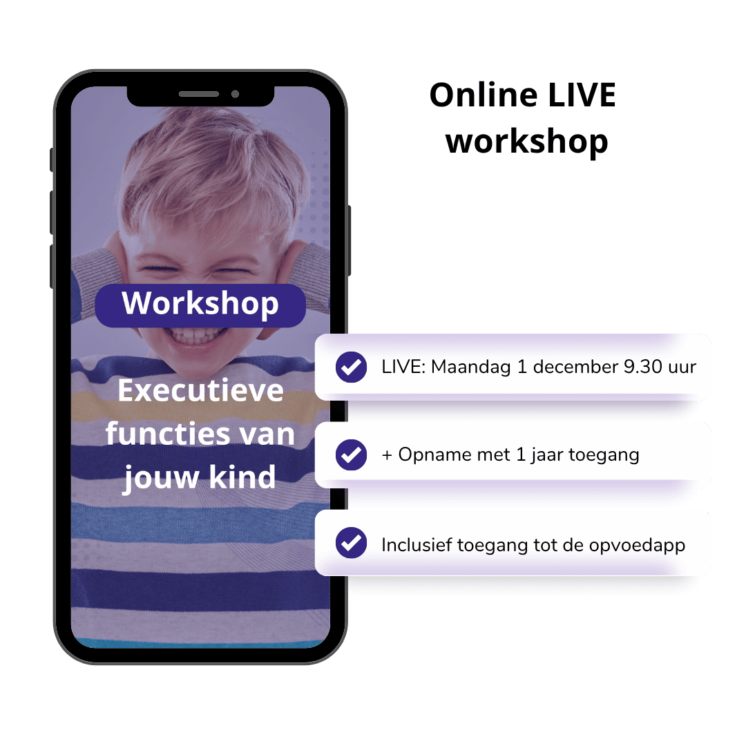 • Geen risico: De workshop kost slechts € 9,95, en de proefperiode van de opvoedapp is tot 3 december gratis. Past het niet bij je? Dan kun je eenvoudig stoppen via je eigen account, zonder opzegtermijn of verdere kosten.